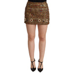 Dolce & Gabbana Gold Crystal Jacquard High Waist Skirt