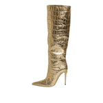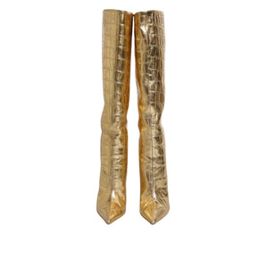 Dolce & Gabbana Gold Leather Stiletto Heels High Boots Shoes