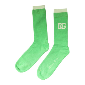 Dolce & Gabbana Green DG Logo Mid Calf Men Nylon Socks