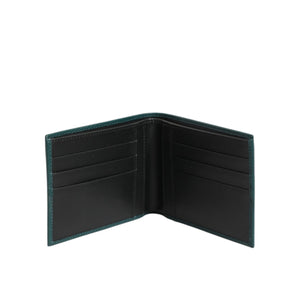 Gorgeous brand new, 100% Authentic Dolce & Gabbana men’s bifold card holder wallet, crafted in Italy from premium pebbled leather. Featuring a sleek blue-green hue, this wallet is detailed with a metal Dolce & Gabbana logo plaque for a sophisticated finish. The compact design offers ample space for your essentials while maintaining a slim profile.