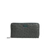 Dolce & Gabbana Green Ostrich Logo Plaque Zip Around Continental Wallet