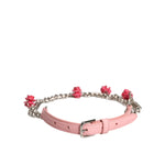Dolce & Gabbana Pink Embelished Roses Textured Leather Belt