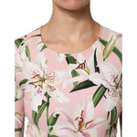 Dolce & Gabbana Pink Lily Print Viscose Round Neck Blouse Top