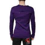 Dolce & Gabbana Purple Cotton Round Neck Pullover Men Sweater