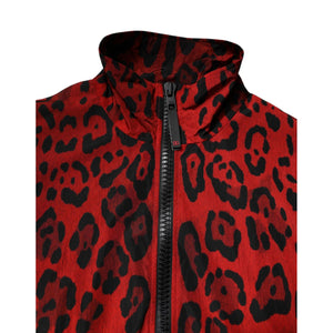 Dolce & Gabbana Red Leopard Nylon Bomber Full Zip Jacket