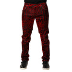 Dolce & Gabbana Red Leopard Print Cotton Skinny Denim Jeans