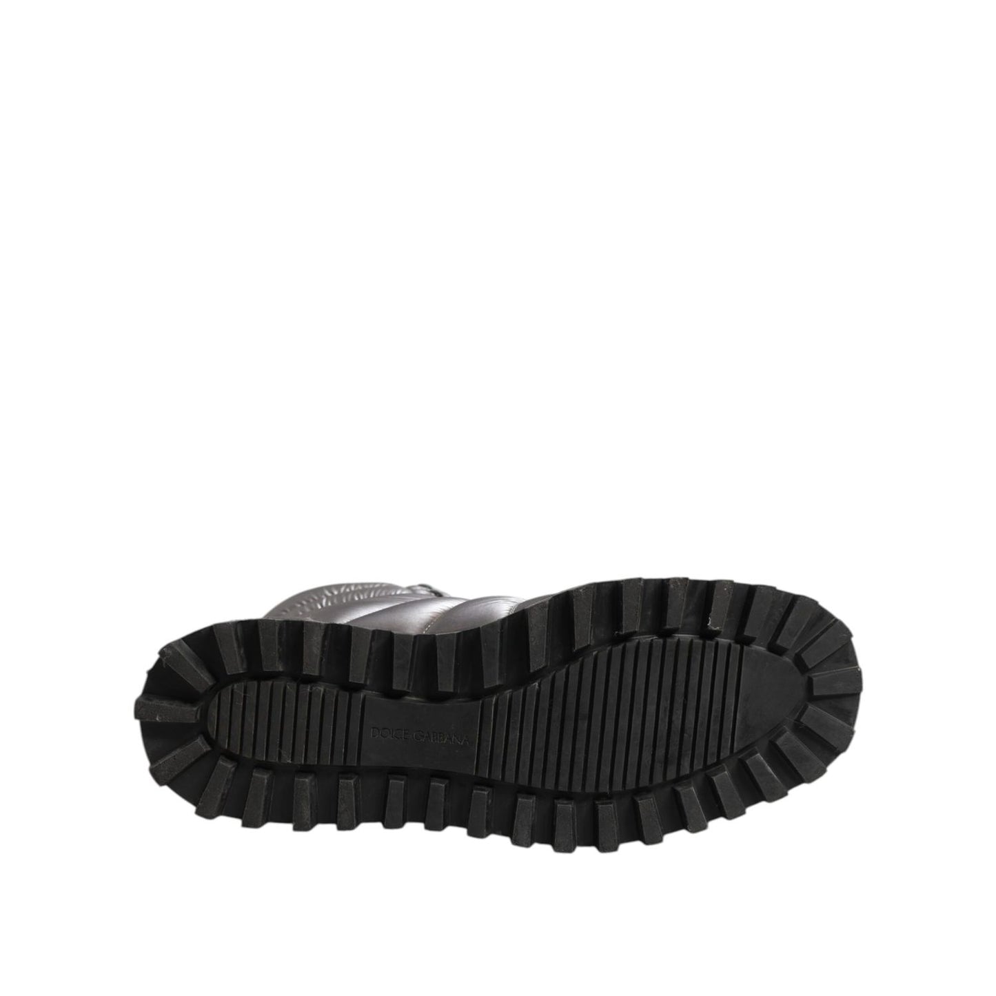 Dolce & Gabbana Silver Padded Mid Calf Lace Up Boots Shoes