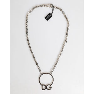 Dolce & Gabbana Silver Tone Brass Chain DG Logo Pendant Men Necklace