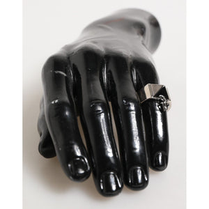 Dolce & Gabbana Silver Tone Pyramid DG Logo Real Brass Ring