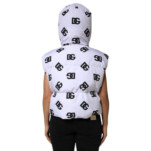 Dolce & Gabbana White Black DG Mania Polyester Puffer Jacket