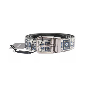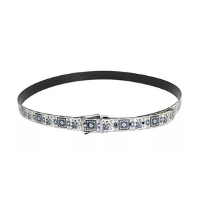 Absolutely stunning, 100% Authentic, brand new with tags Dolce & Gabbana Men’s white with blue print silk tie and leather belt set. Wonderfully boxed and great as a gift set.