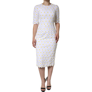 Dolce & Gabbana White Daisy Macrame Lace Sheath Midi Dress