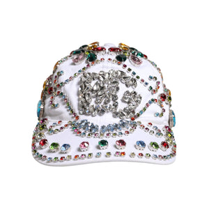 Dolce & Gabbana White Multicolor Crystal Embellish Baseball Cap