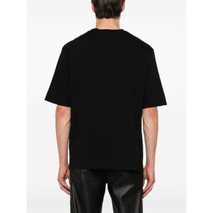 black cotton soft jersey round neck logo print to the front short sleeves straight hem Logo cotton t-shirt Size and Fit - This piece fits true to size. We recommend you get your regular size. Model is 1,84m / 6ft 1in wearing size M