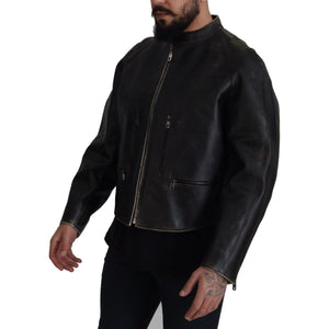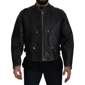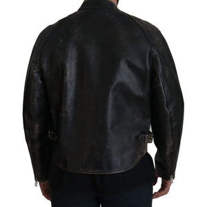 جاكيت جلدي أسود أنيق بتفاصيل فضية من دولتشي آند غابانا