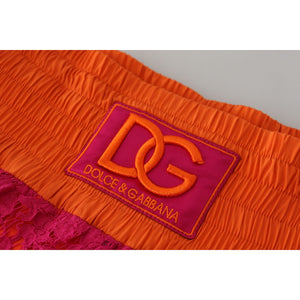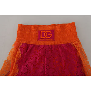 نقدم لكم مجموعتنا الرائعة من شورتات Dolce & Gabbana ذات الخصر العالي المصنوعة من الدانتيل، وهي مزيج مثالي من الجاذبية والراحة. صُنع هذا الشورت مع الالتزام بالفخامة والأنوثة، وهو يعرض تفاعلًا مذهلاً بين درجات اللون الوردي والبرتقالي، وهو مصمم للارتقاء بمظهرك الأنيق وغير الرسمي. قطعة ملابس لا غنى عنها تجسّد الأناقة العصرية مع حزام خصر مطاطي لملاءمة مثالية.