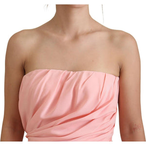فستان دولتشي آند غابانا الأنيق باللون الوردي بدون حمالات متوسط الطول