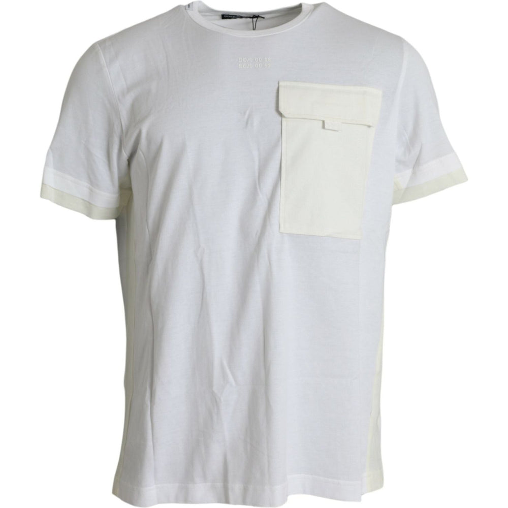 تي شيرت دولتشي آند غابانا الأنيق المصنوع من القطن باللون الأبيض بياقة دائرية