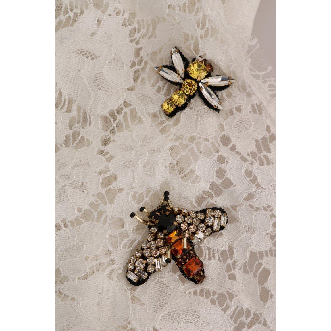 بلوزة ميني أنيقة مزينة بالدانتيل باللون الأبيض من دولتشي آند غابانا