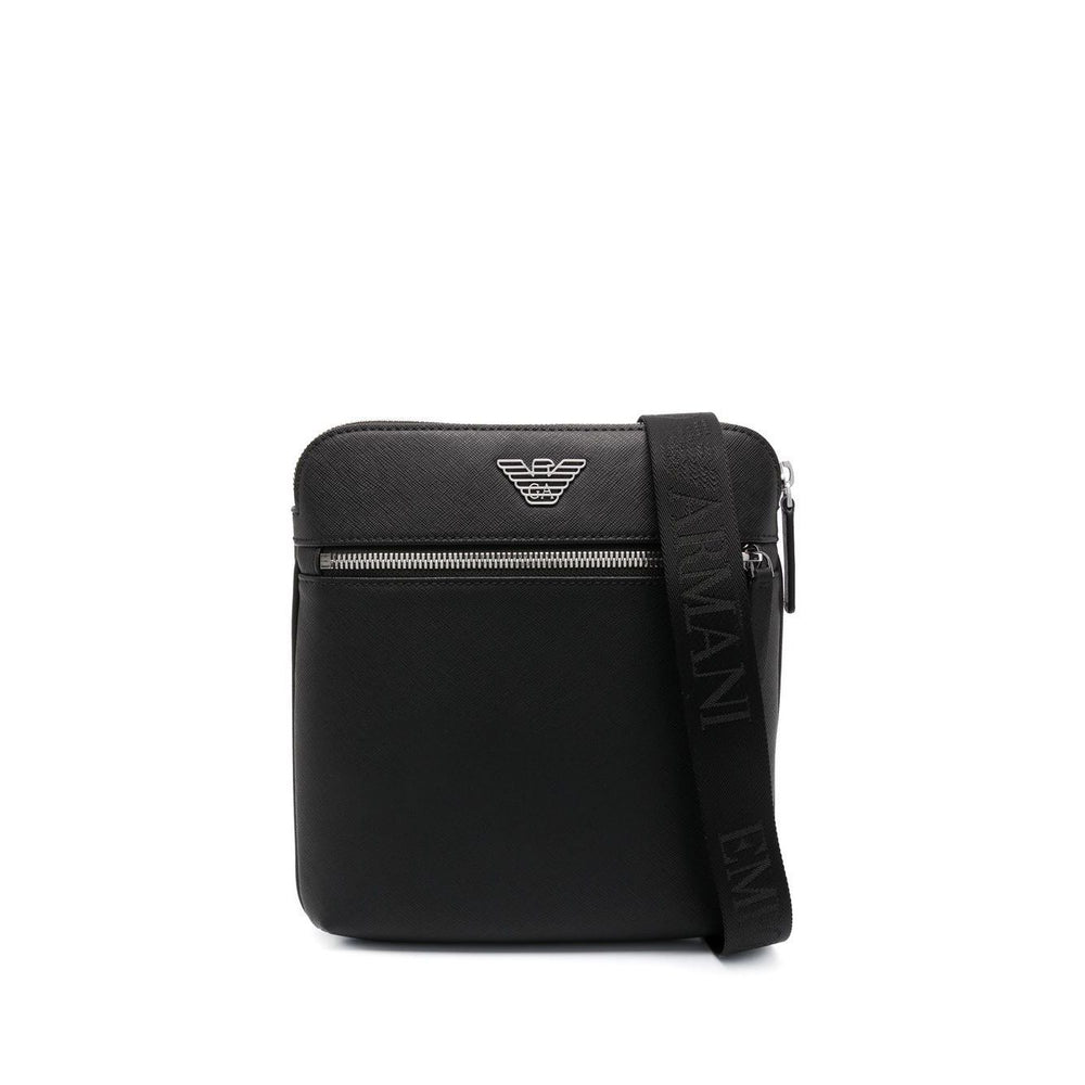 Emporio Armani ASV regenerated Saffiano leather flat shoulder bag with eagle plate