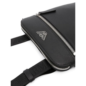 small faux-leather messenger bag from EMPORIO ARMANI featuring jet black, faux leather, logo plaque, silver-tone hardware, top zip fastening, adjustable shoulder strap, logo-print strap, main compartment, internal zip-fastening pocket and front zip-fastening pocket. Faux leather crossbody bag Size and Fit - Width 8,27 in / 21 cm Height 8,66 in / 22 cm Depth 1,57 in / 4 cm Strap 27,95 in / 71 cm