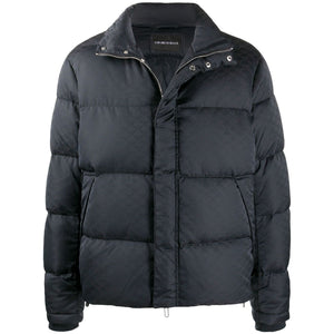 dark blue padded design front zip fastening front press-stud fastening long sleeves two side slit pockets Nylon short down jacket