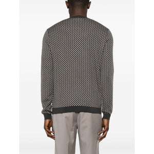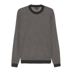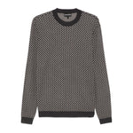 black crew neck long sleeves ribbed cuffs and hem Allover logo wool blend sweater Size and Fit - This piece fits true to size. We recommend you get your regular size. Model is 1,84m / 6ft 1in wearing size M