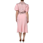 Ermanno Scervino Pink Floral Lace Short Sleeves V-neck Midi Dress