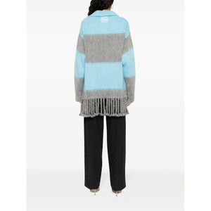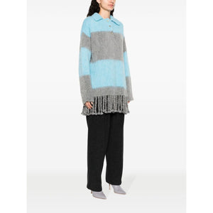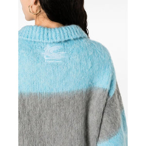 fringed-edge sweater minidress from ETRO featuring light blue, grey, ribbed knit, horizontal stripe pattern, brushed effect, signature Pegaso motif, embroidered logo to the rear, polo collar, front button placket, long sleeves and fringed edge. Striped wool blend polo shirt Size and Fit - This piece fits true to size. We recommend you get your regular size. Model is 1,75m / 5ft 8in wearing size 40 (IT)