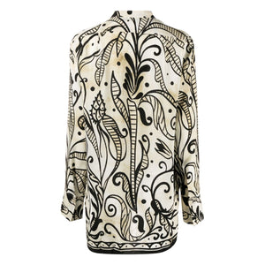 floral-print silk pyjama shirt from F.R.S For Restless Sleepers featuring light beige, black, silk, all-over floral print, band collar, long sleeves and front button fastening. Printed silk shirt Size and Fit - This piece fits true to size. We recommend you get your regular size. Model is 1,75m / 5ft 8in wearing size S