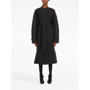 zip-detail belted trench coat from Ferragamo featuring black, cotton blend, belted waist, decorative zip detailing, concealed front fastening, high neck, long sleeves, mid-length and straight hem. Zip-detail cotton belted trench coat Size and Fit - This piece fits true to size. We recommend you get your regular size. Model is 1,75m / 5ft 8in wearing size 40 (IT)
