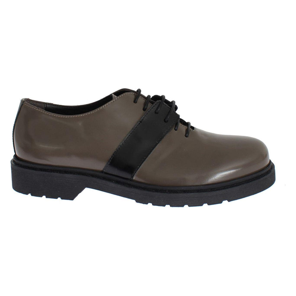 AI_ حذاء أنيق من الجلد باللون الرمادي والبني برباط