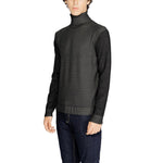 The HAMAKI-HO MI3102H men’s turtleneck sweater is a refined knitwear piece, perfect for those seeking both style and comfort on any occasion. Crafted from a high-quality blend of 70% viscose and 30% nylon, it provides a soft and lightweight feel against the skin. The elegant design features a geometric textured pattern on the front, adding a modern and sophisticated touch, while the sleeves and back are in a solid color for a clean and versatile look. The high neck offers warmth and enhances the garment’s silhouette, making it suitable for both casual and more formal outfits. Ribbed cuffs and hem ensure a perfect fit and increased durability. This practical and stylish sweater is designed for the contemporary man who values fashion and comfort.