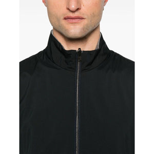 midnight blue front two-way zip fastening elasticated cuffs two side welt pockets elasticated hem Reversible blouson jacket Size and Fit - This piece fits true to size. We recommend you get your regular size. Model is 1,84m / 6ft 1in wearing size 48 (IT)