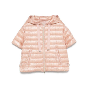 peach pink front two-way zip fastening two side welt pockets side slits drawstring hood Nylon short down jacket Size and Fit - This piece fits true to size. We recommend you get your regular size. Model is 1,75m / 5ft 8in wearing size 40 (IT)