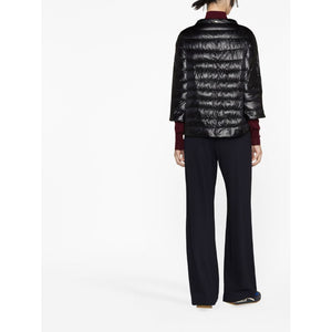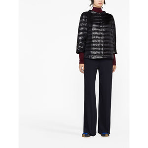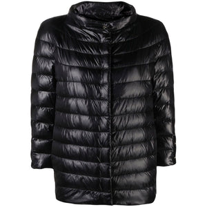 black down-feather filling quilted mock neck concealed front fastening long sleeves Nylon lightweight cape Size and Fit - This piece fits true to size. We recommend you get your regular size. Model is 1,75m / 5ft 8in wearing size 40 (IT)