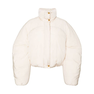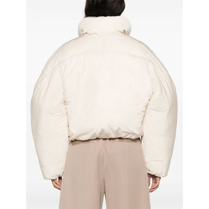 off-white padded design funnel neck front press-stud and zip fastening long sleeves elasticated cuffs elasticated hem two side slit pockets full lining gold-tone hardware La Doudoune Courte Caraco down jacket Size and Fit - This piece fits true to size. We recommend you get your regular size. Model is 1,75m / 5ft 8in wearing size 36 (FR)