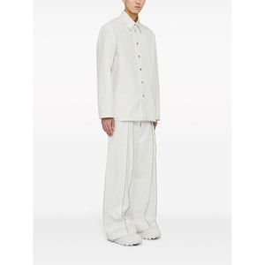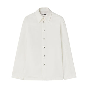 logo-embossed cotton shirt from JIL SANDER featuring off-white, cotton, embossed logo to the side, classic collar, front press-stud fastening, long sleeves and straight hem. Organic cotton denim shirt Size and Fit - This piece fits true to size. We recommend you get your regular size. Model is 1,84m / 6ft 1in wearing size 39 (COLLAR CM)