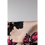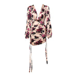 • Laneus Pink Floral Silk Long Sleeves V-neck Ruched Mini Dress