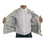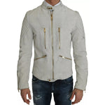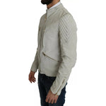 سترة بايكر للدراجات النارية من الجلد باللون الأبيض من دولتشي آند غابانا