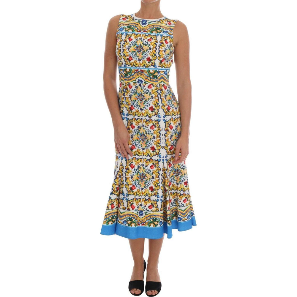 فستان متوسط الطول بطبعة الماجوليكا من دولتشي آند غابانا