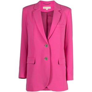 single-breasted wool blazer from MICHAEL MICHAEL KORS featuring wool blend, notched lapels, front button fastening, long sleeves, buttoned cuffs, two front flap pockets, straight hem and cerise pink. Single-breasted blazer jacket Size and Fit - This piece fits true to size. We recommend you get your regular size. Model is 1,75m / 5ft 8in wearing size 4 (US)