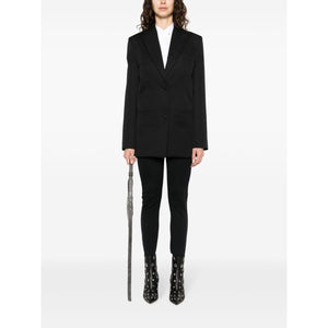 black virgin wool embroidered motif at the cuff peak lapels long sleeves front button fastening chest welt pocket two side welt pockets logo-jacquard lining Wool jacket Size and Fit - This piece fits true to size. We recommend you get your regular size. Model is 1,75m / 5ft 8in wearing size 40 (IT)