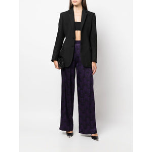 geometric-print silk trousers from OZWALD BOATENG featuring purple, black, silk blend, geometric-pattern print, elasticated waistband and wide leg. Elastic waist printed silk trousers Size and Fit - This piece fits true to size. We recommend you get your regular size. Model is 1,84m / 6ft 1in wearing size 32 (WAIST CM)