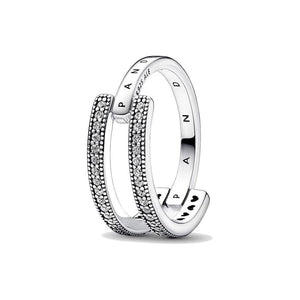خاتم PANDORA JEWELS Mod. SIGNATURE LOGO & PAVE DOUBLE BAND - مقاس 54