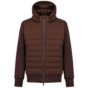 People Of Shibuya jacket with hood in soft touch matte nylon with 90/10 down for the heat-sealed quilted front and hood.
