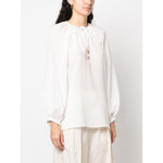 self-tie silk blouse from phaeonia featuring white, silk, self-tie fastening, keyhole neck, long raglan sleeves and elasticated cuffs. Anita long sleeves blouse Size and Fit - This piece fits true to size. We recommend you get your regular size. Model is 1,75m / 5ft 8in wearing size 40 (IT)