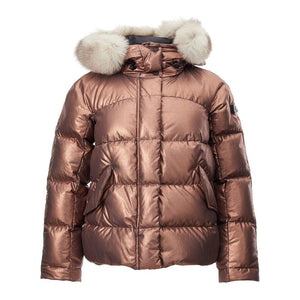 Peuterey Bronze Metal ‘Mils’ Padded Jacket, iridescent effect. Frotal fastening with zipper and covered buttons, two side pockets with flaps and covered button. Adjustable hood with removable fur collar. Adjustable outer drawstring. Ideal for temperatures: +10°C/-5°C. Sku Article: PED 3340 01181519. Composition: 100% Polyester-Sku inside:23OT160