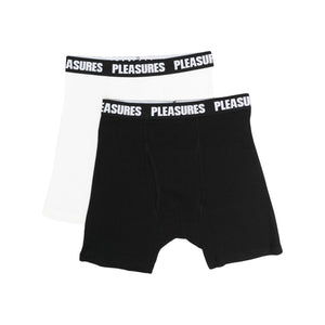 logo waistband boxers from Pleasures featuring cotton, black/white, logo waistband, stretch-design and pack of two. Just a reminder that this piece must be tried on over your own garments.. Logo boxer briefs Size and Fit - This piece fits true to size. We recommend you get your regular size. Model is 1,84m / 6ft 1in wearing size M