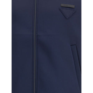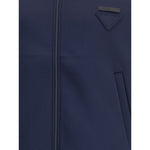 Contemporary style Sweatshirt by Prada, made with a high collar and front zipper closure. Raglan sleeves ensure comfort and freedom of movement, while the two side welt pockets offer practicality and a functional touch. The design is completed with a distinctive triangular patch applied on the front and a logo patch that recalls the brand’s iconic identity.